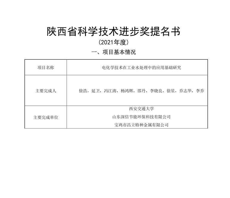 根據(jù)陜西省科技獎(jiǎng)勵(lì)有關(guān)要求,現(xiàn)將我司2020年度陜西省科技獎(jiǎng)合作申報(bào)項(xiàng)目 “電化學(xué)技術(shù)在工業(yè)水處理中的應(yīng)用基礎(chǔ)研究”信息在公司主頁(yè)(http://www.tsvl.cn/)上公布,向全校征詢(xún)異議。
